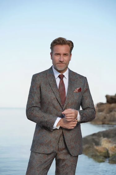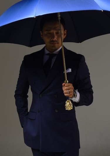 Costumes, manteaux et accessoires réalisés à la main avec des étoffes d’exception.