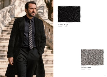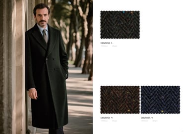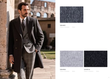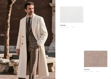 Nous travaillons avec une large gamme de tissus haut de gamme, dont les prestigieuses étoffes Loro Piana, reconnues pour leur douceur incomparable, leur durabilité et leurs innovations techniques, notamment dans les matières imperméables et coupe-vent. Ces tissus d’exception permettent de concevoir des manteaux à la fois élégants, chaleureux et résistants aux intempéries.