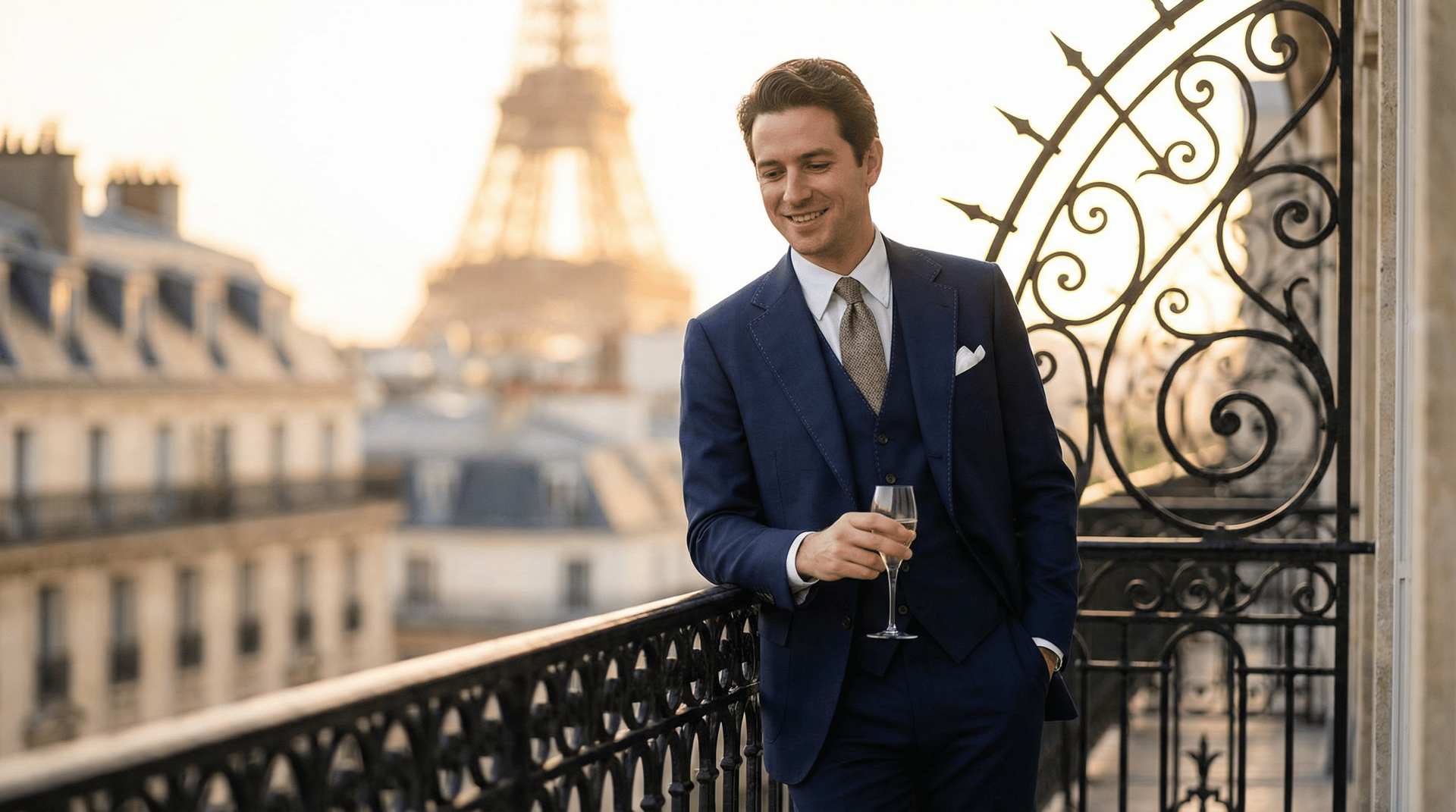 Votre costume est taillé à la main dans nos ateliers partenaires en Europe. Toile de crin, finitions main, contrôle qualité systématique.