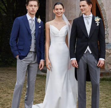 Absolument. Nous proposons des formules complètes pour habiller le marié, les témoins, le père du marié et le père de la mariée. Chaque tenue est coordonnée avec le costume du marié pour une cohérence visuelle parfaite sur les photos. Des rendez-vous distincts peuvent être organisés, en groupe ou individuellement.