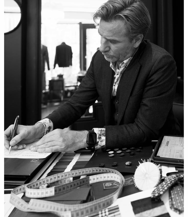 Located in the heart of Paris’s 8th arrondissement on Avenue Hoche, the atelier has been creating custom suits, jackets, coats, shirts, and other pieces for over 20 years, with exceptional fabrics and hand-finished details for both men and women.