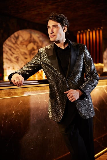 Le smoking en velours Pour les soirées d'hiver, les dîners privés, les soirées au théâtre ou à l'opéra. La texture du velours capte la lumière comme aucun autre tissu. En noir, bleu nuit, bordeaux ou vert profond — le smoking velours est une déclaration de style.