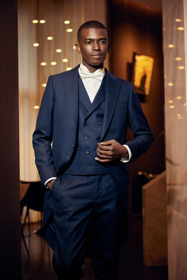 Ces moments exigent une tenue à leur hauteur. Pas un smoking de location approximatif. Pas un modèle de série qui rendra les épaules à 23h. Un smoking conçu pour vous, qui vous permettra de traverser la soirée avec la même aisance et la même élégance à minuit qu'à l'arrivée.